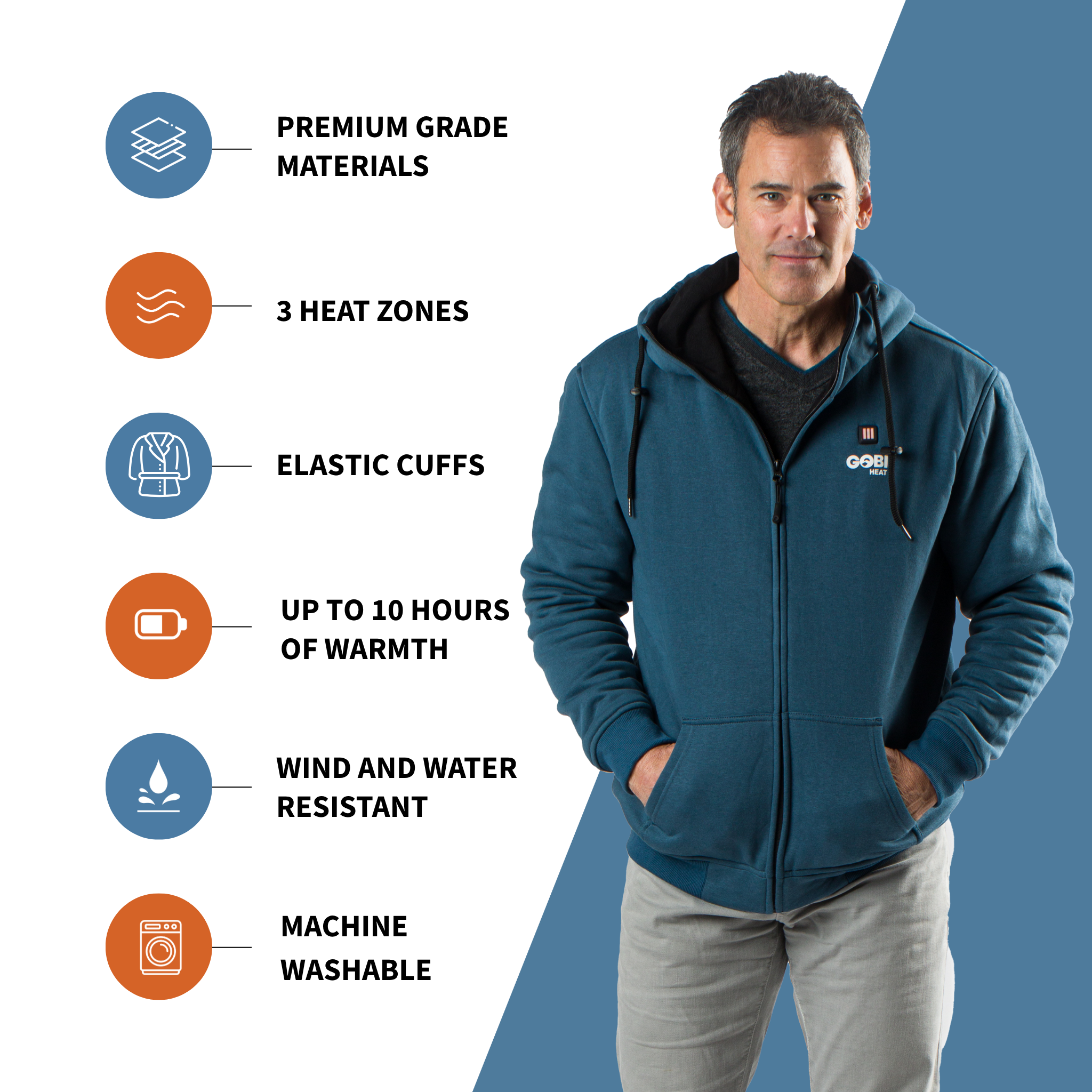 Ridge Mens Heated Hoodie — 3 Bar Button Low/Med/High