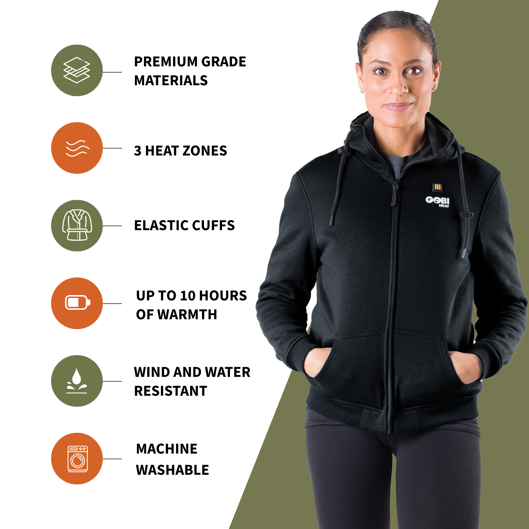 Why choose the Women’s Ridge Heated Hoodie? Its sleek full-zip design allows for easy layering, and the soft yet durable fabric is lightweight, making it both comfortable and resilient. Available in a wide range of sizes, this heated hoodie is your go-to companion for outdoor activities, running errands, or staying cozy at home. Treat yourself to the gift of warmth, or surprise someone special with this thoughtful present!