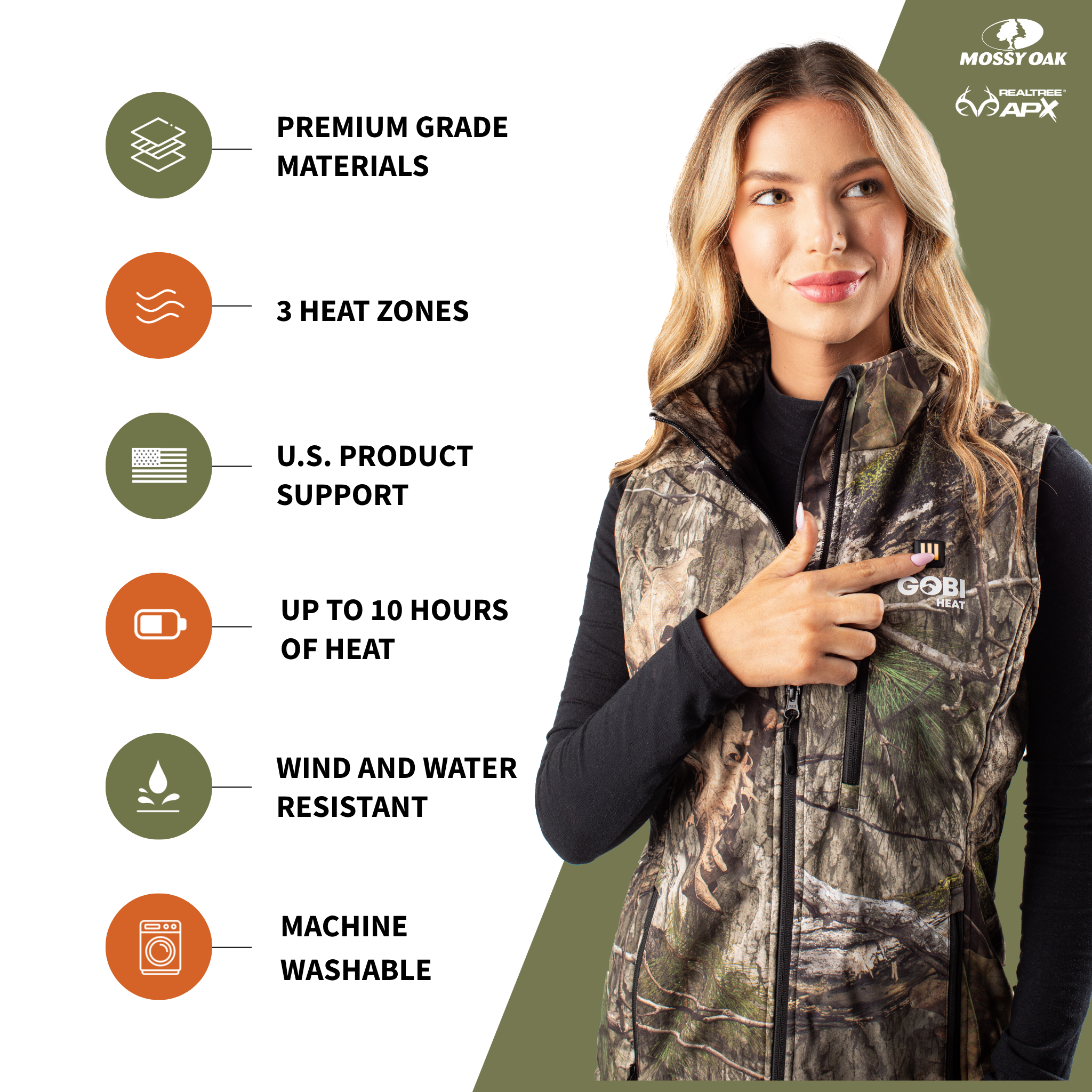 Colorado Womens Heated Hunting Vest - Mossy Oak® Camo - Gobi Heat