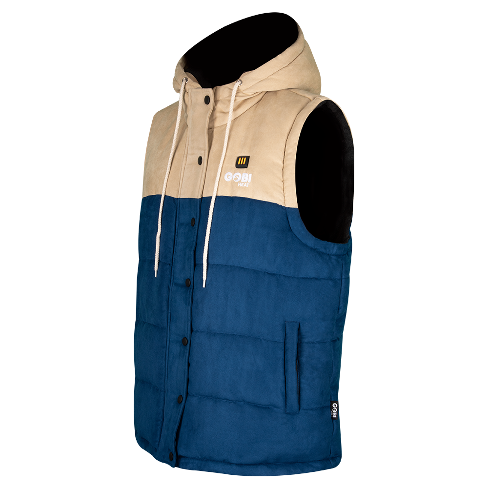 The Colt Vest is Gobi Heat’s most feature-rich—and trend-forward—vest yet. Designed with a thick puffer build and a timeless two-toned look, the Colt blends retro style with modern warmth. Its microsuede outer shell comes in Shoreline, a deep blue and cream combination that feels both classic and fresh.
